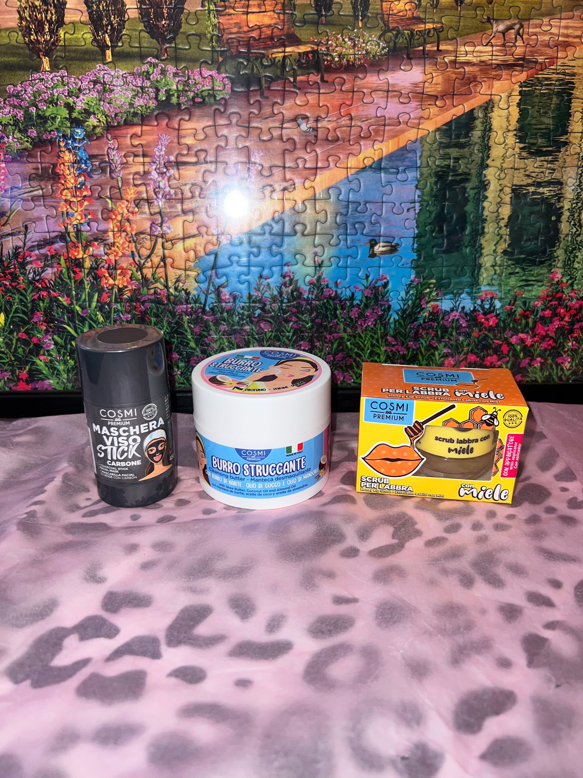 3 prodotti cosmi :maschera in stick carbone, scrub labbra, burro struccante